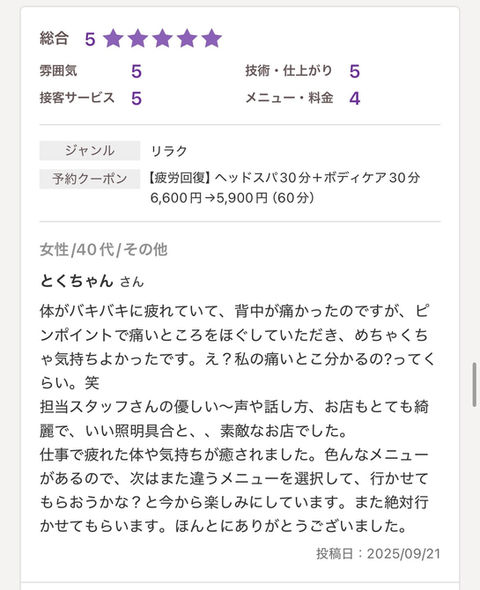 当店オリジナルな手技で「心からほぐれる心地よさ」を大切にしています。